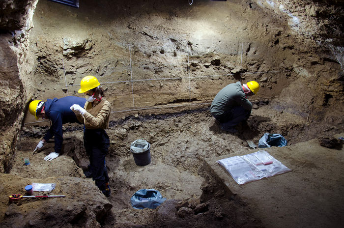 Peer-Reviewed PublicationIMAGE: CURRENT EXCAVATIONS AT BACHO KIRO CAVE OF THE 2021 SEASON ARE UNEARTHING NEW ARTIFACTS FROM THE MIDDLE PALAEOLITHIC NEANDERTHAL OCCUPATIONS. THE INITIAL UPPER PALAEOLITHIC LAYER I CAN BE SEEN AS A DARK BAND IN THE SEDIMENT PROFILE. EXCAVATORS ARE WEARING MASKS AND GLOVES TO MINIMIZE CONTAMINATION OF SAMPLES THAT ARE REGULARLY TAKEN FOR MOLECULAR ANALYSES. view more