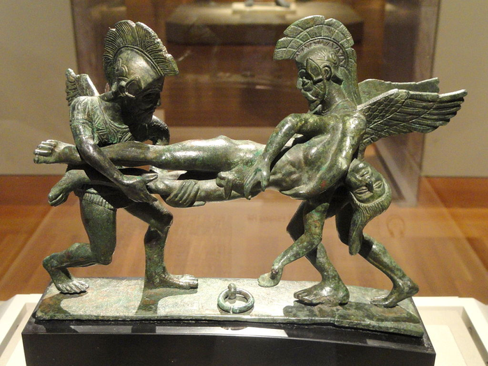 Peer-Reviewed PublicationIMAGE: SLEEP AND DEATH CARRYING OFF THE SLAIN SARPEDON (CISTA HANDLE), 400-380 BC, ETRUSCAN, BRONZE - CLEVELAND MUSEUM OF ART view more
