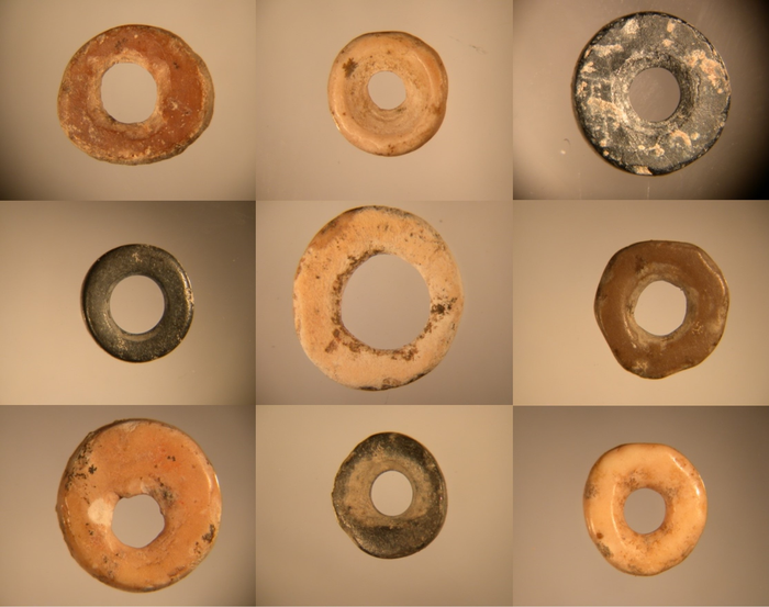 IMAGE: DIGITAL MICROSCOPE IMAGES OF ARCHEOLOGICAL OSTRICH EGGSHELL BEADS view more