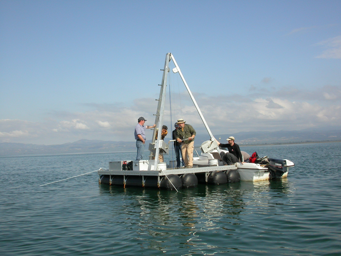 IMAGE: WITH WHICH THE RESEARCHERS FROM THE UNIVERSITY OF BONN TOOK DRILL CORES FROM THE LAKE SEDIMENT ON LAKE IZNIK (TURKEY) AND DETERMINED THE POLLEN IN THEM. view more