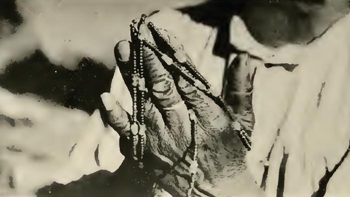 IMAGE: WOMAN MEASURING A STRAND OF SHELL BEADS IN A PHOTO TAKEN IN 1918. view more