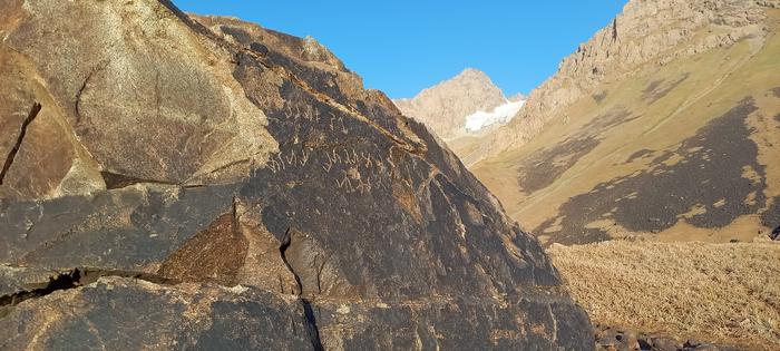 The writing system was has been known since the 1950s, but had never been successfully deciphered. In 2022, a short bilingual was found carved into a rock face in the Almosi Gorge in northwestern Tajikistan, approximately 30 km from the capital Dushanbe. In addition to the unknown Kushan script, it also contains a section in the already known Bactrian language. This discovery led to renewed attempts by several researchers to decode the script – independently of one another. In the end, the linguists at the University of Cologne succeeded in partially deciphering the writing system in collaboration with the Tajik archaeologist Dr Bobomullo Bobomulloev, who was instrumental in the discovery and documentation of the bilingual.