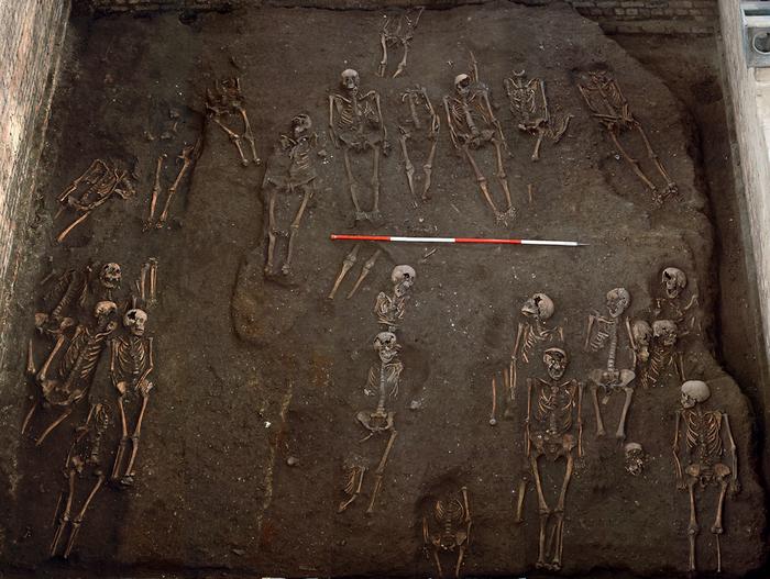 THE REMAINS OF NUMEROUS INDIVIDUALS UNEARTHED ON THE FORMER SITE OF THE HOSPITAL OF ST. JOHN THE EVANGELIST, TAKEN DURING THE 2010 EXCAVATION.