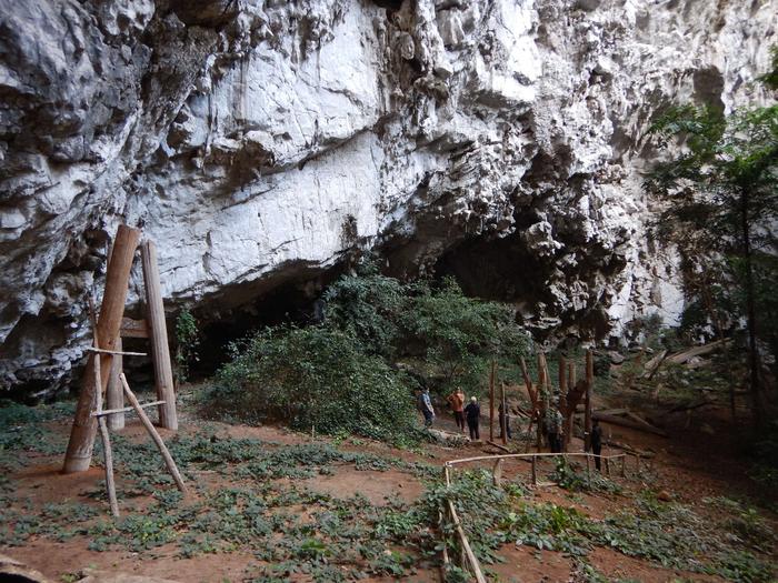 Decidious and evergreen forests dominate the limestone karst formations of the northwestern highlands of Thailand. A vast number of caves and rock shelters intersperses the mountains. In over 40 such caves in Mae Hong Son province, large wooden coffins mounted on stilts, dating between 2,300 and 1,000 years ago, can be found. During the Iron Age period, each of these up to several-meter-long coffins was crafted from a single teak tree and features refined carvings of geometric, animal- or human-like shapes at the handles of both ends.