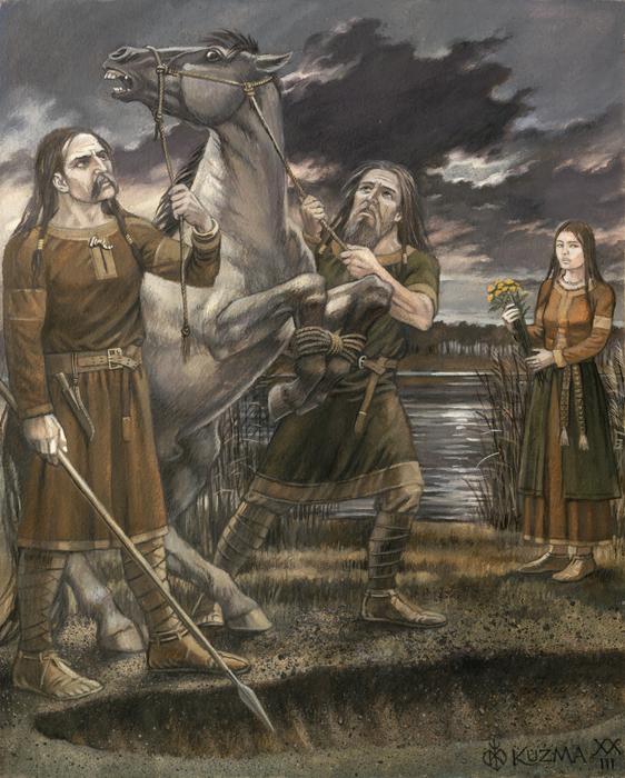 Horse sacrifices were highly visible and symbolic public rites across pagan prehistoric Europe, persisting the latest among the Baltic tribes, up to the 14th century AD. Offering pits might include multiple horses, single complete horses, or partial animals. In many Baltic cemeteries horses were buried separately from humans, but there are numerous examples of horses with overlain human cremations.