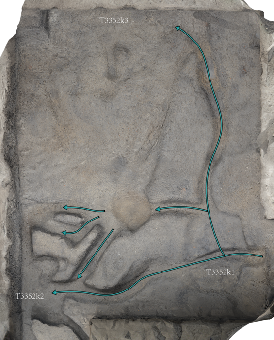 IMAGE: THROUGH THREE-DIMENSIONAL MODELING USING THE AGISOFT PHOTOSCAN SOFTWARE, THE DIRECTIONS OF WATER FLOWS WITHIN AND AROUND THESE FEATURES WERE SIMULATED. GRAPHICS BY ZHENWEI QIU. view more
