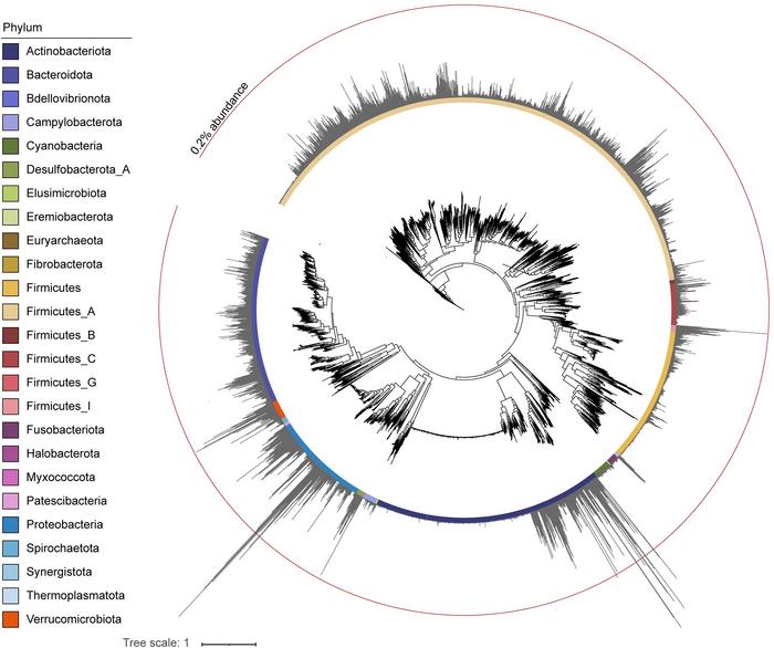PHYLOGENETIC TREES OF DETECTED GUT BACTERIA. THE TREE INDICATES PHYLOGENETIC RELATIONSHIPS OF 4,616 BACTERIAL SPECIES.