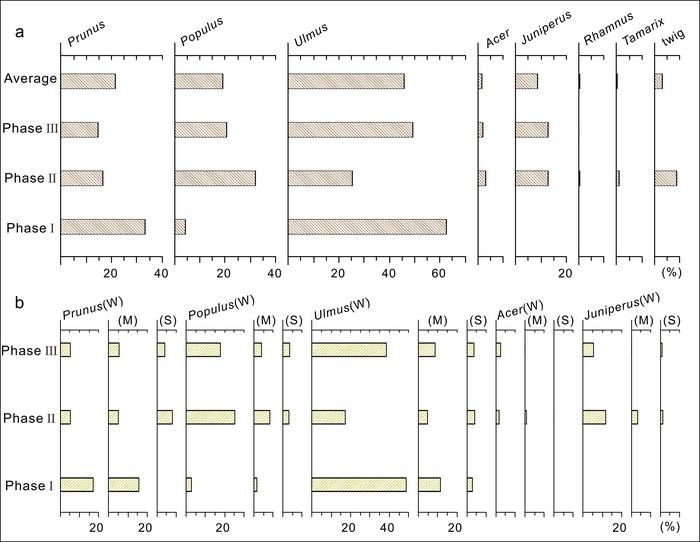 The measurement of tree-ring curvature indicates that people mainly collected trunks or large branches of Ulmus, Populus, Acer, and Juniperus plants. Meanwhile, Xinglong people probably had mastered the knowledge of how to protect and manage Prunus woodlands via pruning and increasing the cutting of nonfruit trees to increase food supply, demonstrating the active response and adaptation of early millet cultivators to their environments.