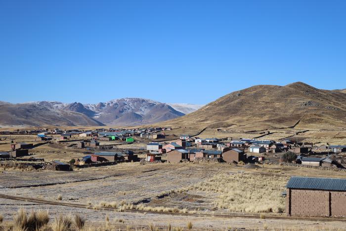 View of the Aymara community of Jachacachi, home to the archaeological sites of Kaillachuro and Jiskairumoko, which offer insights into the transition to agriculture in the Andean Altiplano.