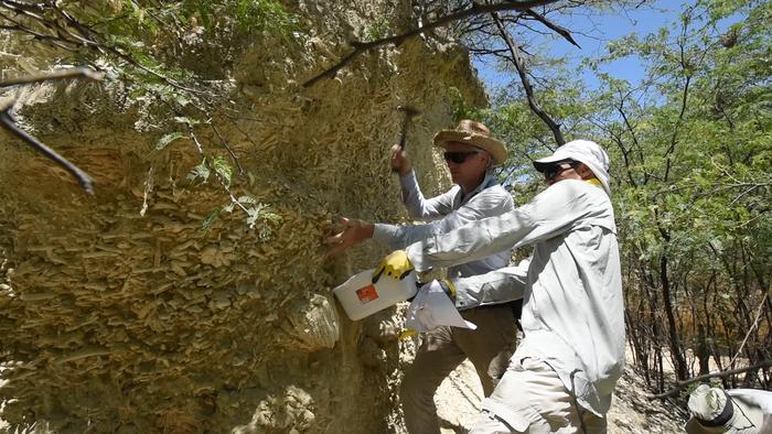 Fieldwork at an exposed fossilized Caribbean reef located in the Dominican Republic